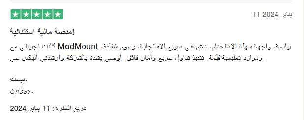 اختيار منصة التداول المناسبة قد يكون نقطة تحول في رحلة أي متداول. بالنسبة للكثيرين، أصبحت ModMount شريكًا موثوقًا، تُساعدهم على الانتقال من حالة عدم اليقين إلى الثقة، ومن التعلم إلى تحقيق أهدافهم في التداول. نسلط الضوء أدناه على تجارب حقيقية وإيجابية لمتداولين استخدموا ModMount لتطوير طموحاتهم المالية، استنادًا إلى تقييمات وآراء موثوقة من جميع أنحاء الإنترنت.