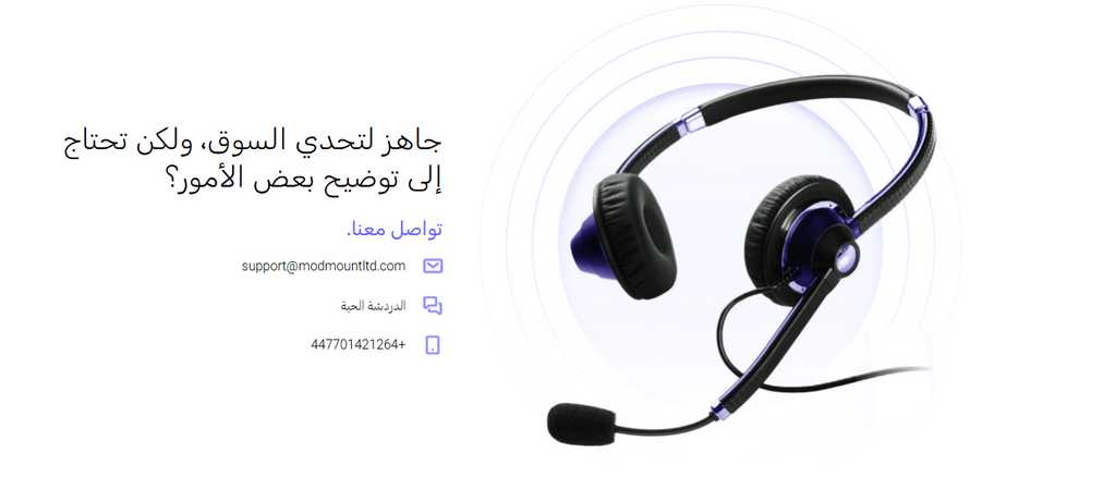 ModMount لخدمة قاعدة عملاء عالمية. يقدم الفريق الدعم بلغات متعددة، منها الإنجليزية والإسبانية والألمانية والفرنسية والعربية، مما يضمن عدم عرقلة الحواجز اللغوية للتواصل الفعال وحل المشكلات. يُعد هذا النهج متعدد اللغات بالغ الأهمية في مجتمع تجاري متنوع، إذ يتيح للمتداولين من مختلف المناطق الشعور بالفهم والدعم.
