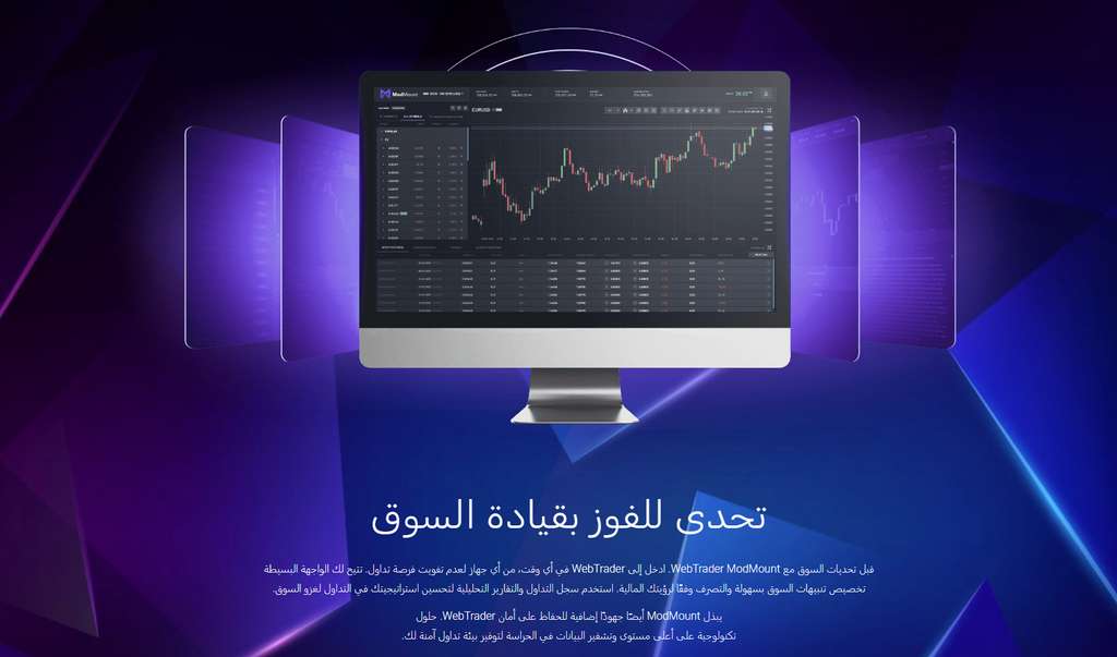صُممت منصة ModMount WebTrader وتطبيقها للهواتف المحمولة خصيصًا لهذه البيئة الديناميكية، مما يوفر وصولاً سلسًا إلى أكثر من 160 عقد فروقات في أسواق الفوركس والسلع والعملات المشفرة والمؤشرات والأسهم.